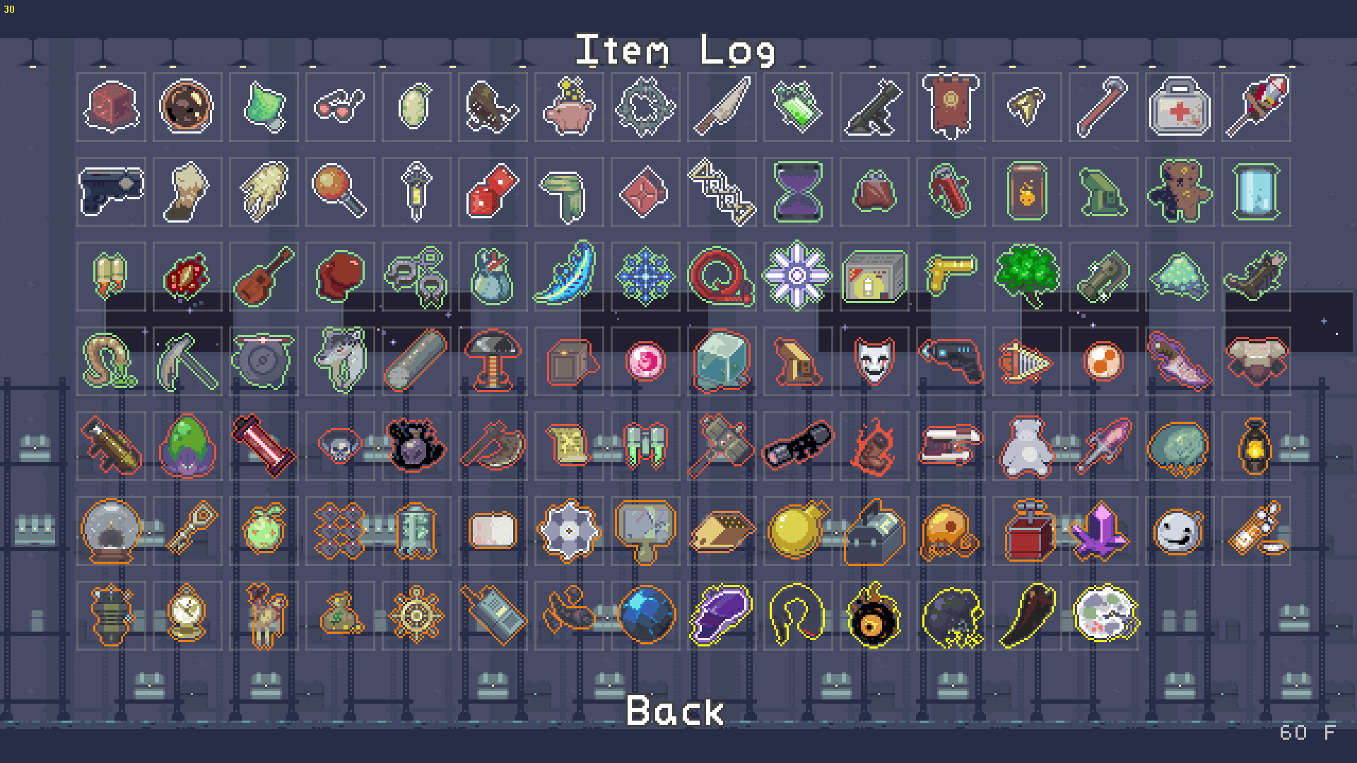 La mayoría de los artículos en este juego están equipados de forma pasiva y siempre están activas. Se pueden apilar y no tienen un límite de apilamiento.