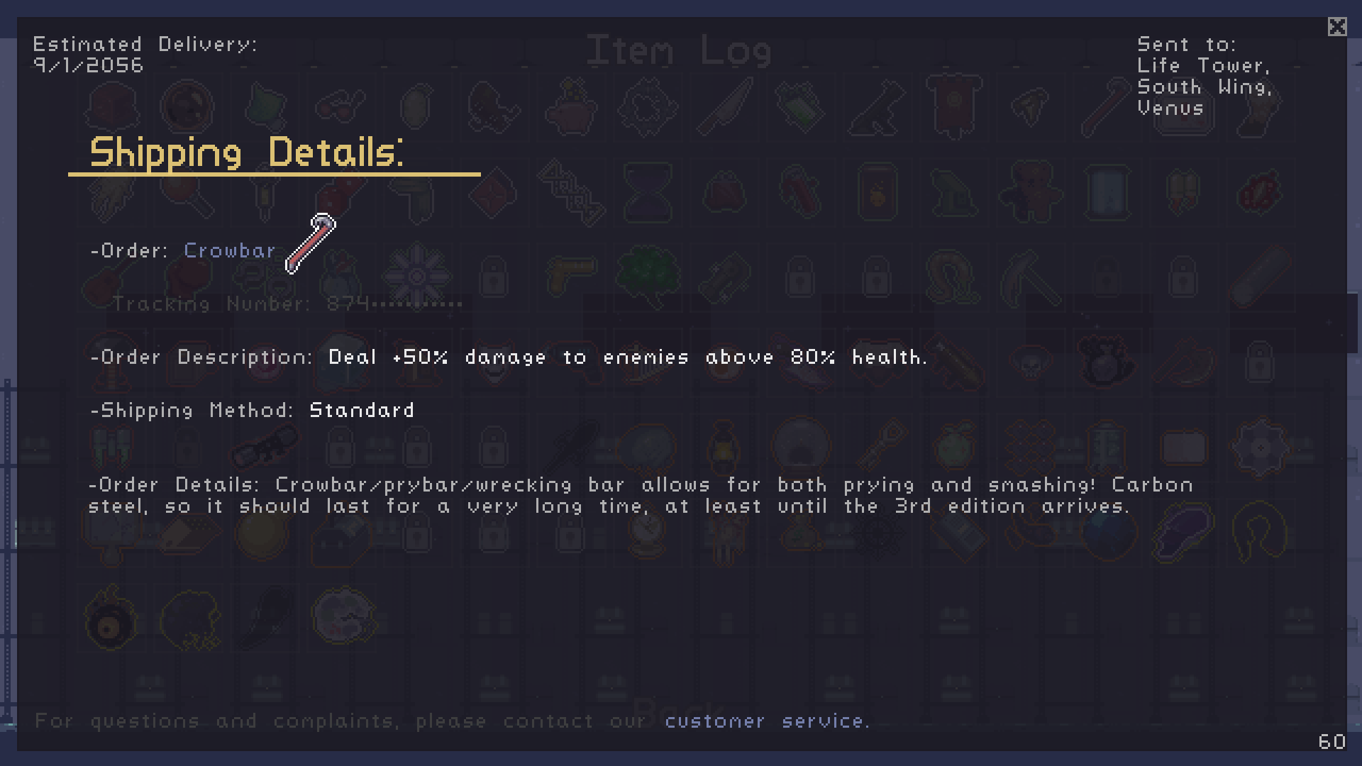 The Crowbar item is a reference to the Half Life series created by Valve, in which the main character Gordon Freeman uses a crowbar similar to the one depicted as his melee weapon.