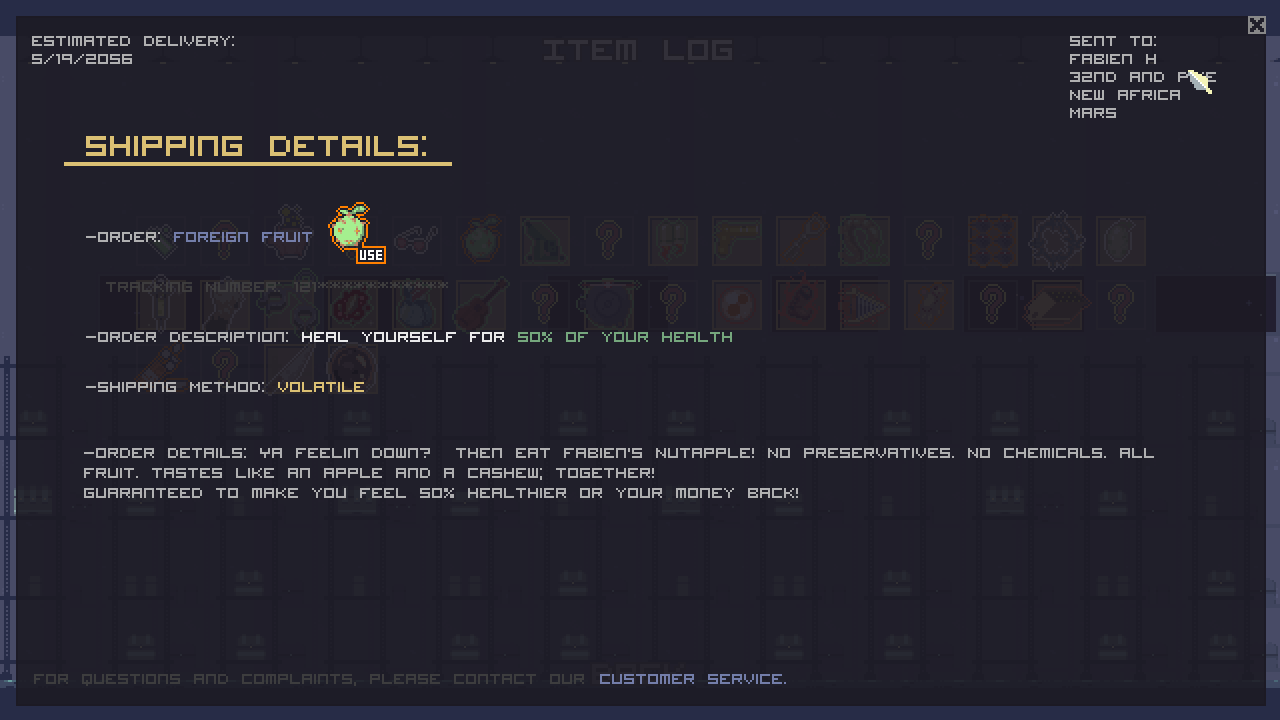 The Foreign Fruit is a use item in Risk of Rain that restores half of your health.