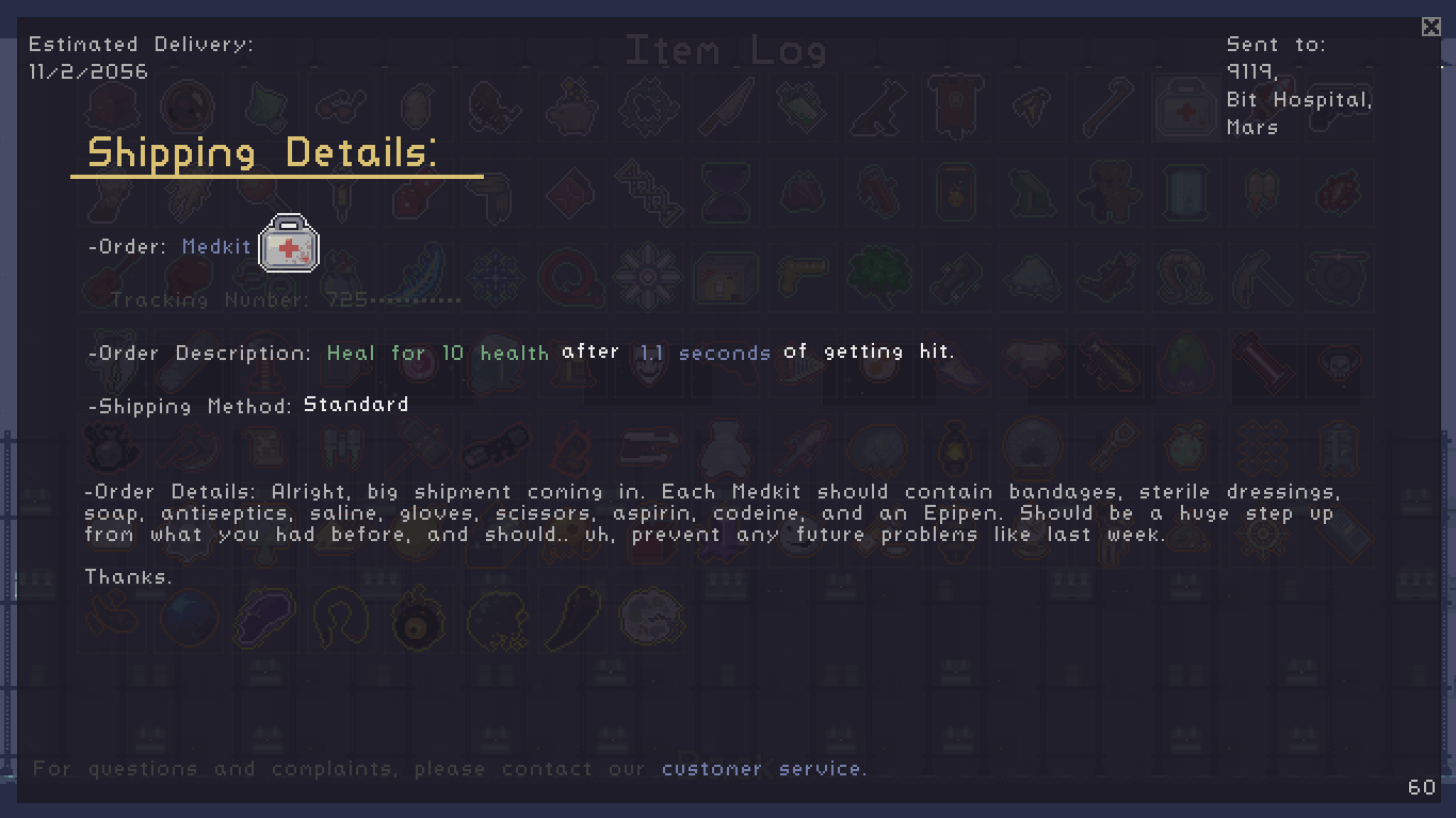 - The address listed in the Shipment Details is 9119. 911 is the emergency telephone number for parts of North America, which fits with the Medkit's theme of emergencies.