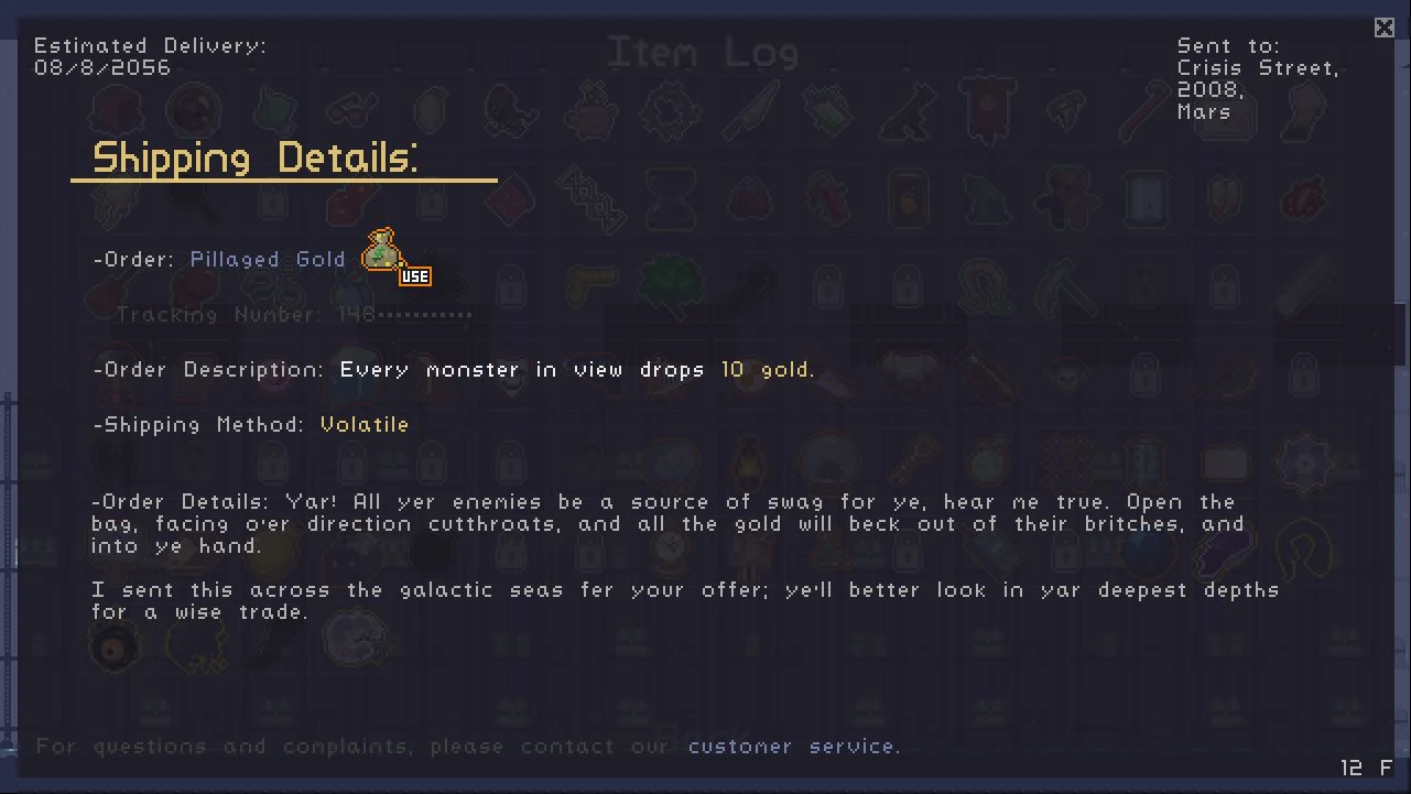 The Pillaged Gold is a use item in Risk of Rain that causes enemies to drop 1 gold when hit (Ingame item log is incorrect).
