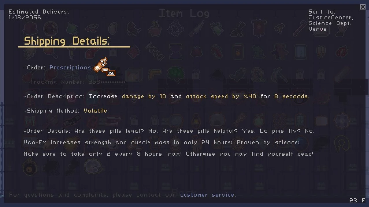 The Prescriptions is a use item in Risk of Rain that for 8 seconds, boosts 10 damage and 40% attack speed for your character.