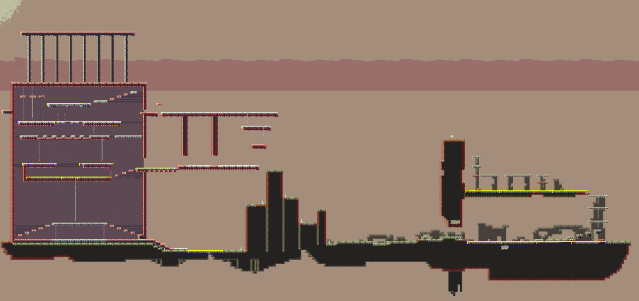 In the background of the stage, the silhouette of the wrecked ship "UES Contact Light" can be seen.